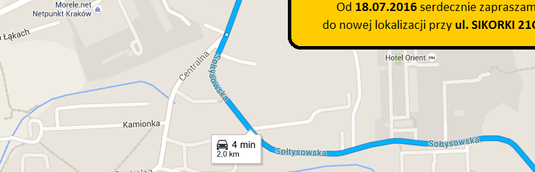 W związku z rozpoczęciem działalności w nowej lokalizacji zapraszamy wszystkich naszych klientów do zapoznania się z mapką dojazdową.